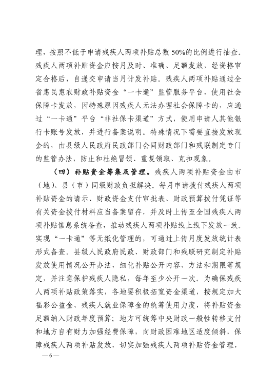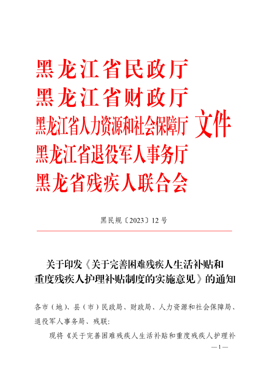 關(guān)于印發(fā)《關(guān)于完善困難殘疾人生活補貼和重度殘疾人護理補貼制度的實施意見》的通知