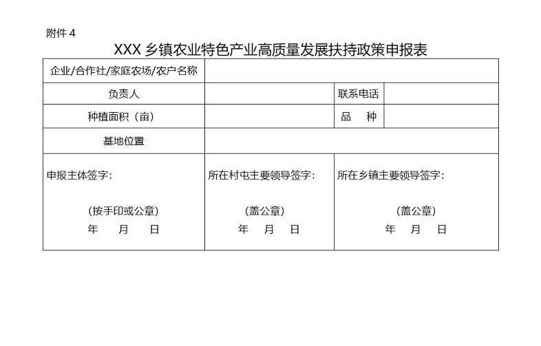 4.XXX鄉(xiāng)鎮(zhèn)農(nóng)業(yè)特色產(chǎn)業(yè)高質(zhì)量發(fā)展政策申報(bào)表