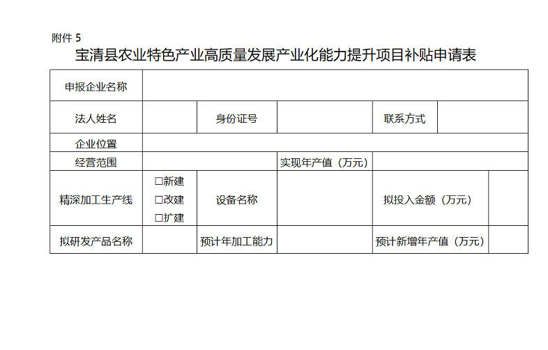 5.寶清縣農(nóng)業(yè)特色產(chǎn)業(yè)高質(zhì)量發(fā)展產(chǎn)業(yè)化能力提升項(xiàng)目補(bǔ)貼申請(qǐng)表