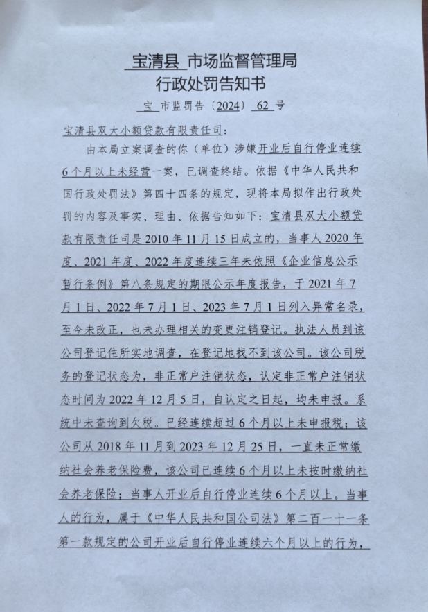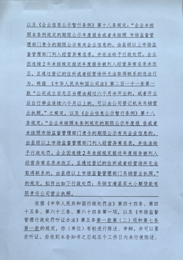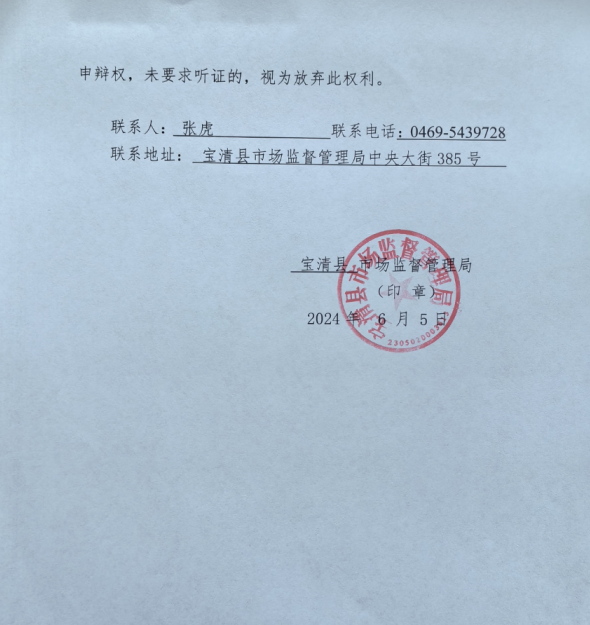 因當(dāng)事人通過登記住所或經(jīng)營場法取得聯(lián)系,我局采取郵寄的方式也無法送達(dá),依《市場監(jiān)督管理行政處罰程序規(guī)定》第八十二條第一款第五項(xiàng)的規(guī)定,現(xiàn)以公告方式送達(dá)。自本公告發(fā)布之日起經(jīng)過三十日,即為送達(dá)。你公司有陳述、申辯和要求舉行聽證的情況,應(yīng)于本公告送達(dá)之日五個(gè)工作日內(nèi)以書面或者口頭形式向本局提出。逾期未出的,視為放棄此權(quán)利。