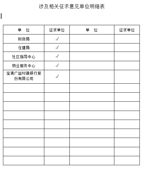 《寶清縣住宅專項(xiàng)維修資金補(bǔ)交、續(xù)交制度(征求意見稿)》現(xiàn)已代擬稿完畢,按規(guī)定需征求相關(guān)單位意見, 按縣領(lǐng)導(dǎo)要求請(qǐng)高度重視制定工作,結(jié)合本部門實(shí)際情況提出修改意見。