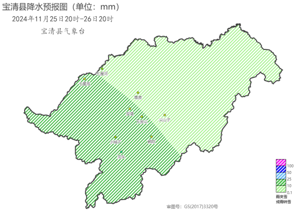 圖一:寶清縣2024年11月25日20時(shí)-26日20時(shí)降水預(yù)報(bào)圖