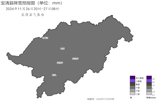 圖二:寶清縣2024年11月26日20時(shí)-27日08時(shí)降雪預(yù)報(bào)圖